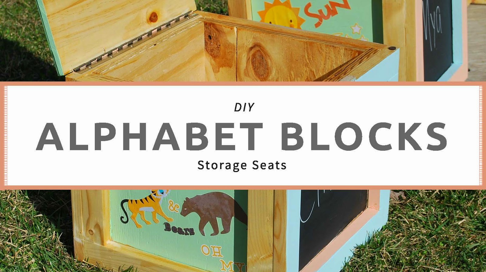 I couldn’t make an Alphabet Blocks inspired Play Table without making matching seating. I wanted the seating to do double duty. Kids come with a lot of…toys. (What did you think I was going to say?) So these seats are both ottomans and provide additional storage.