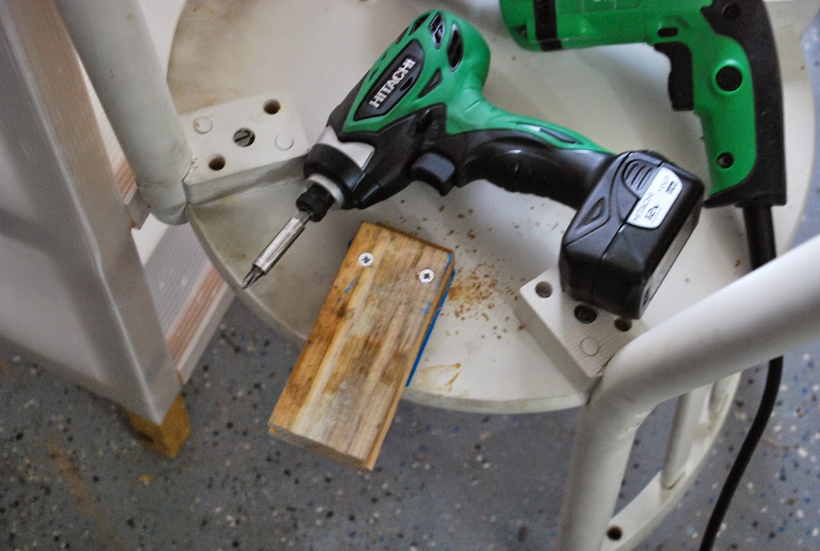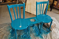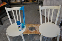 Once the support beams were in place I was able to turn the chairs over and fill the imperfections with wood filler.
