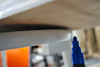 Outlining the cut line with a chalk marker.