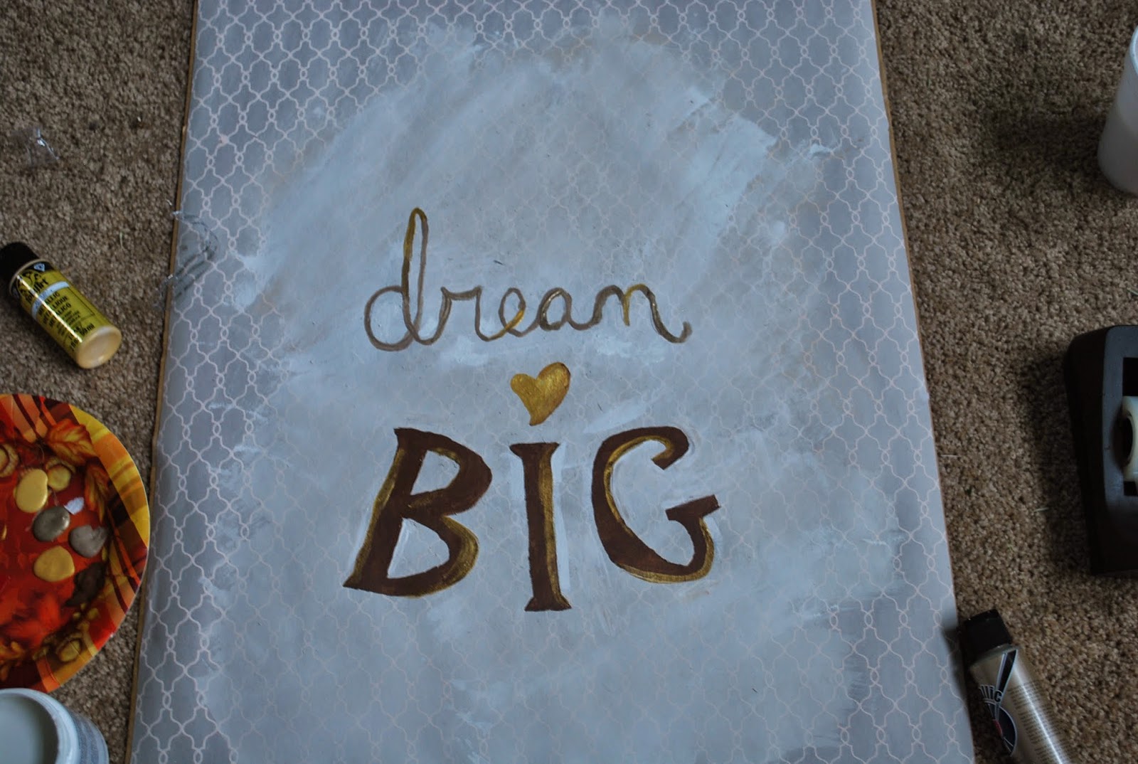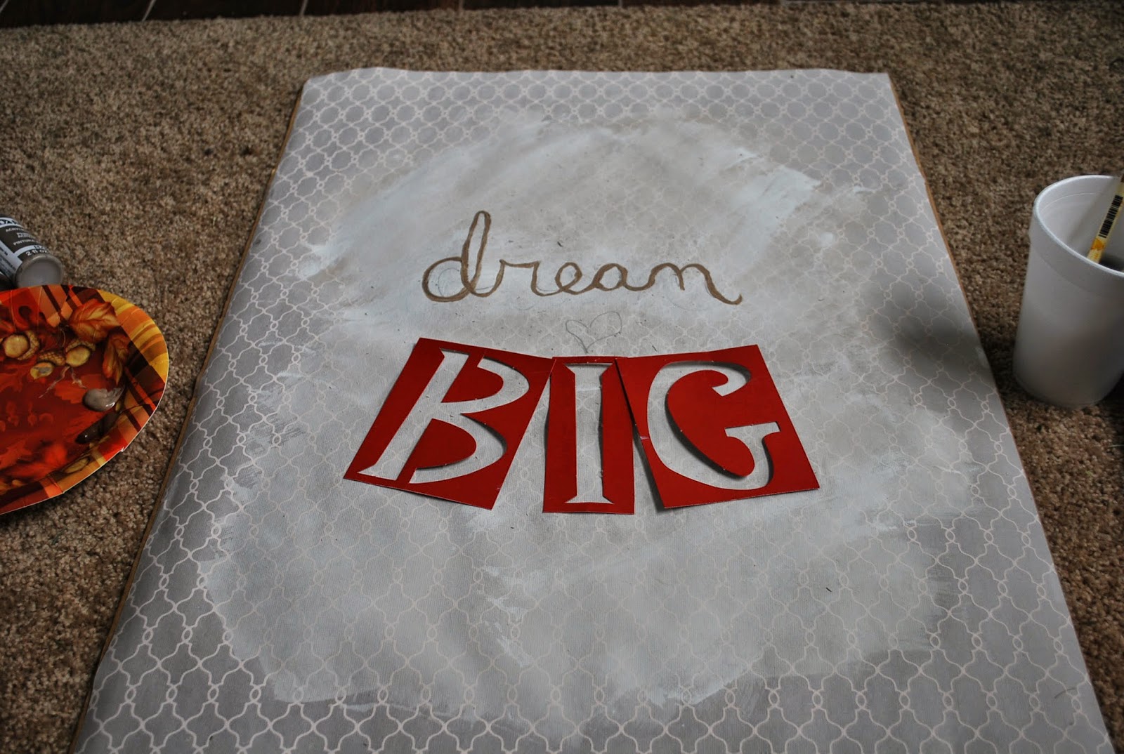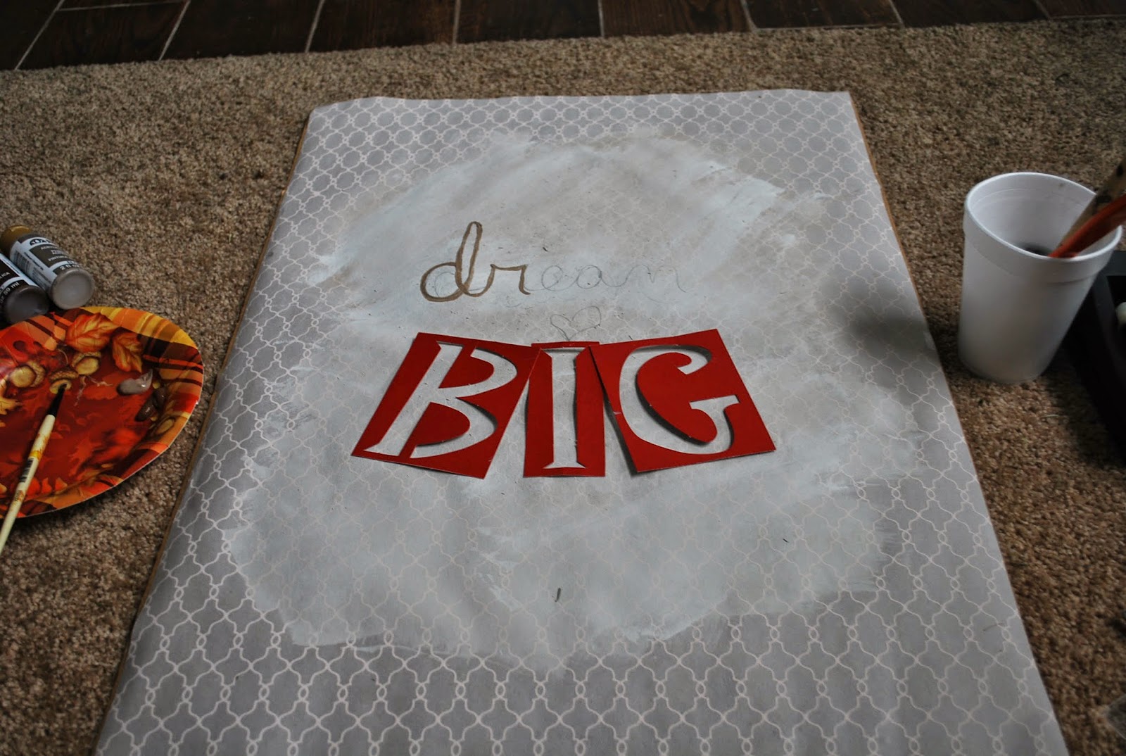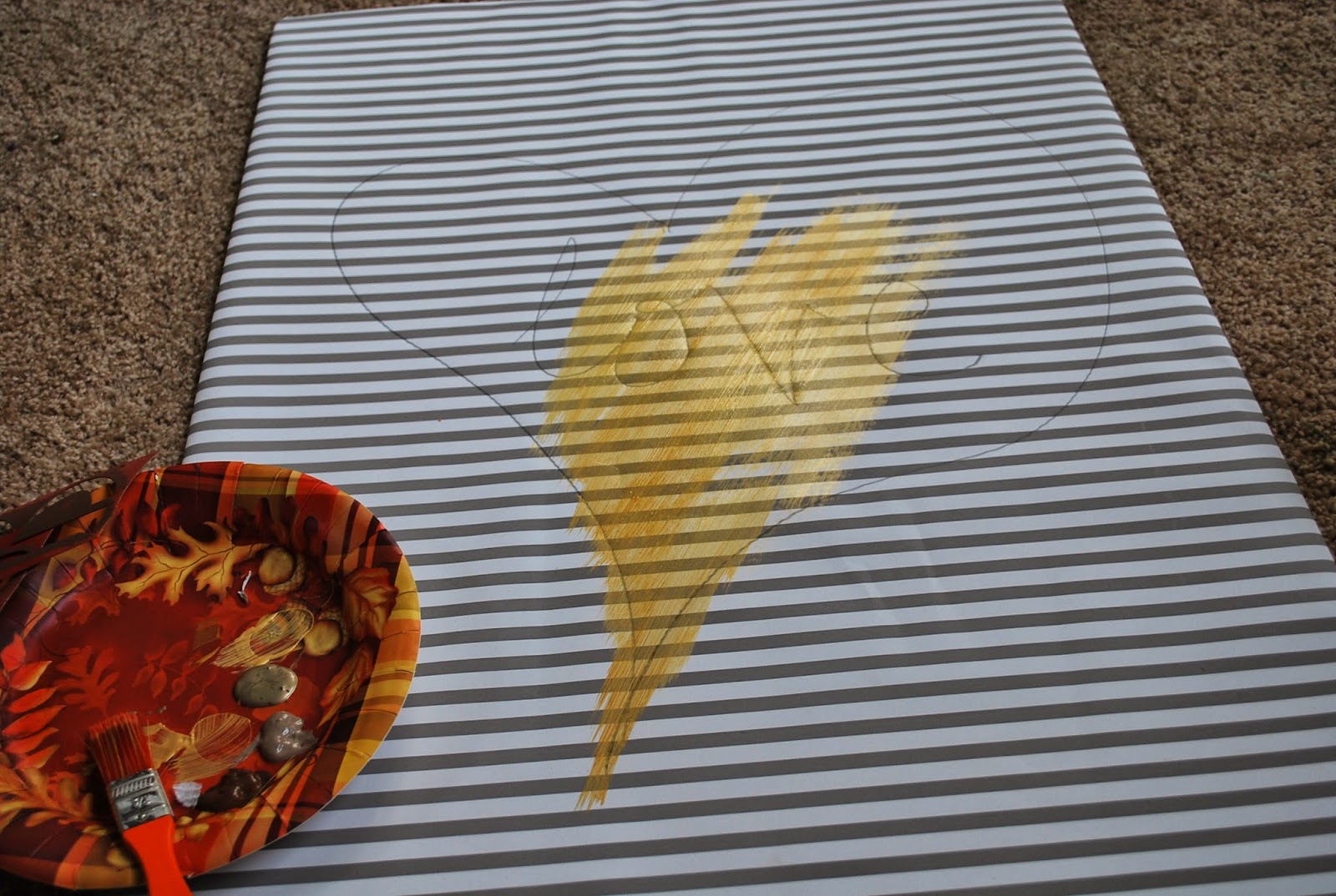 Make your gift wrapping and paint color selections. I’m making two wall art pieces that will go side by side. So I am using complimentary gift wrapping and colors.