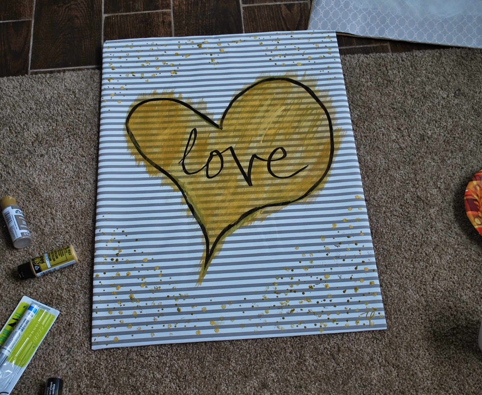 Once the paint dries outline your pencil drawing with a black sharpie. Feel free to dress it up with little dots all around the heart.