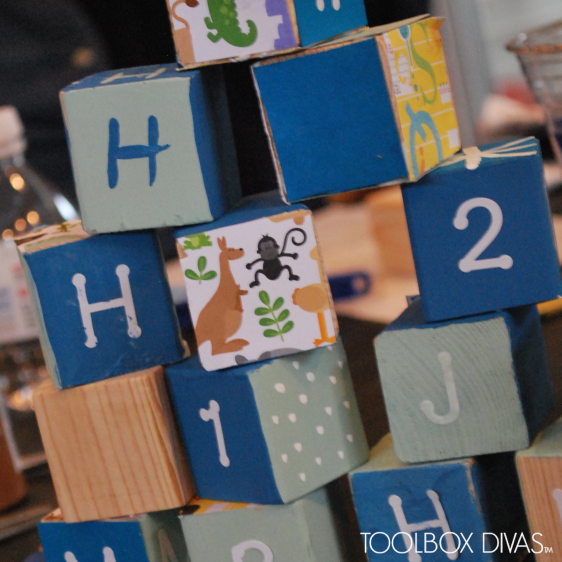 Recently I had the pleasure of attending a friend’s baby shower. I debated over what I should give her. I wanted to give her something meaningful that she and her child would enjoy. While pinning the morning away, waiting on my car to be serviced, I came across the most wonderful pin on Pinterest, DIY Alphabet Blocks. It was the cutest idea found on the blog Mod Podge Rocks, (and by the way Mod Podge does rock.) Given that the Room of the Month for March’s Pinterest Room Challenge is the kids room, I thought this would be perfect. I’d make something that was both fun to play with and decorative for a child’s space. This project was both simple and easy to do, creating a fun activity for all, kids and adults at the shower.