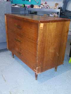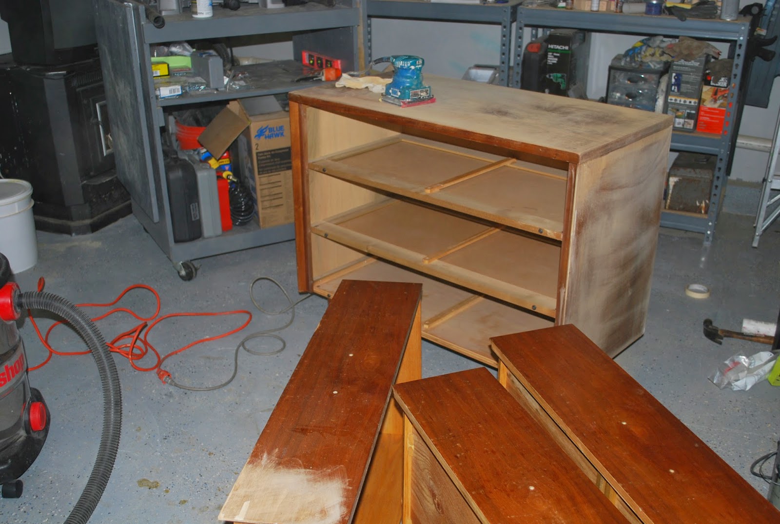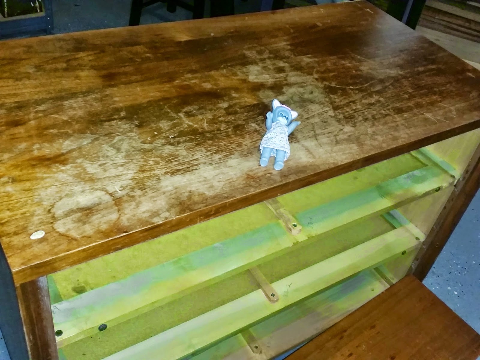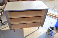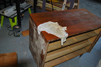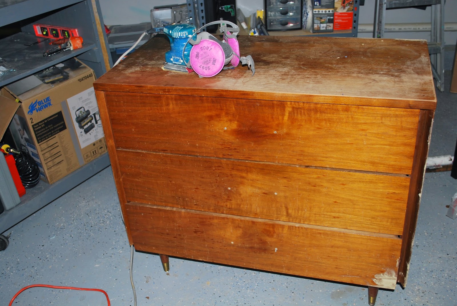 I sanded the dresser down one more time paying close attention to the areas where I filled with wood filler.