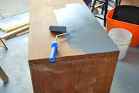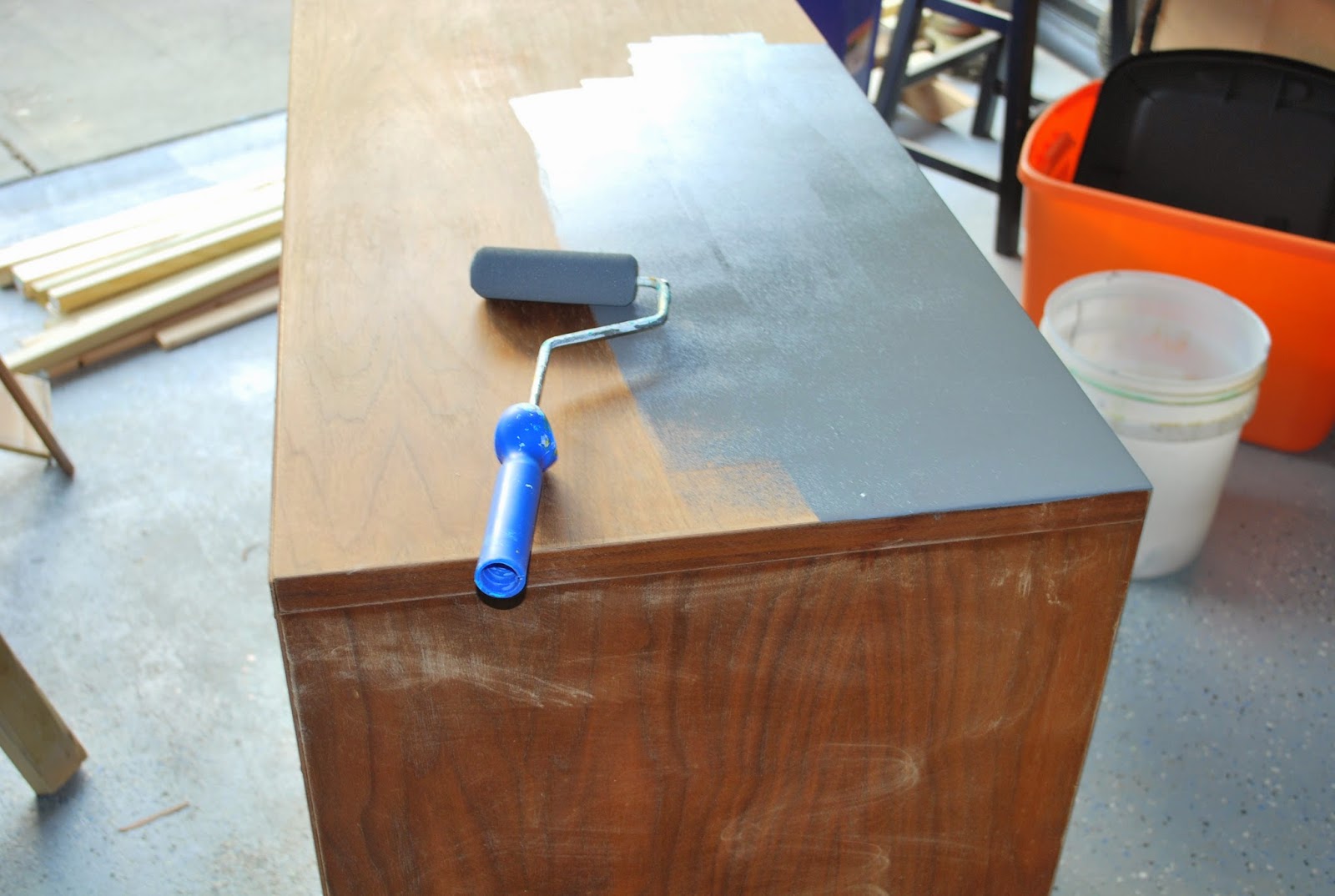 Instead of using a paint sprayer (I was too lazy to clean it after I was done.) I opted for a paint roller that was ideal for cabinets and achieving a smooth finish.