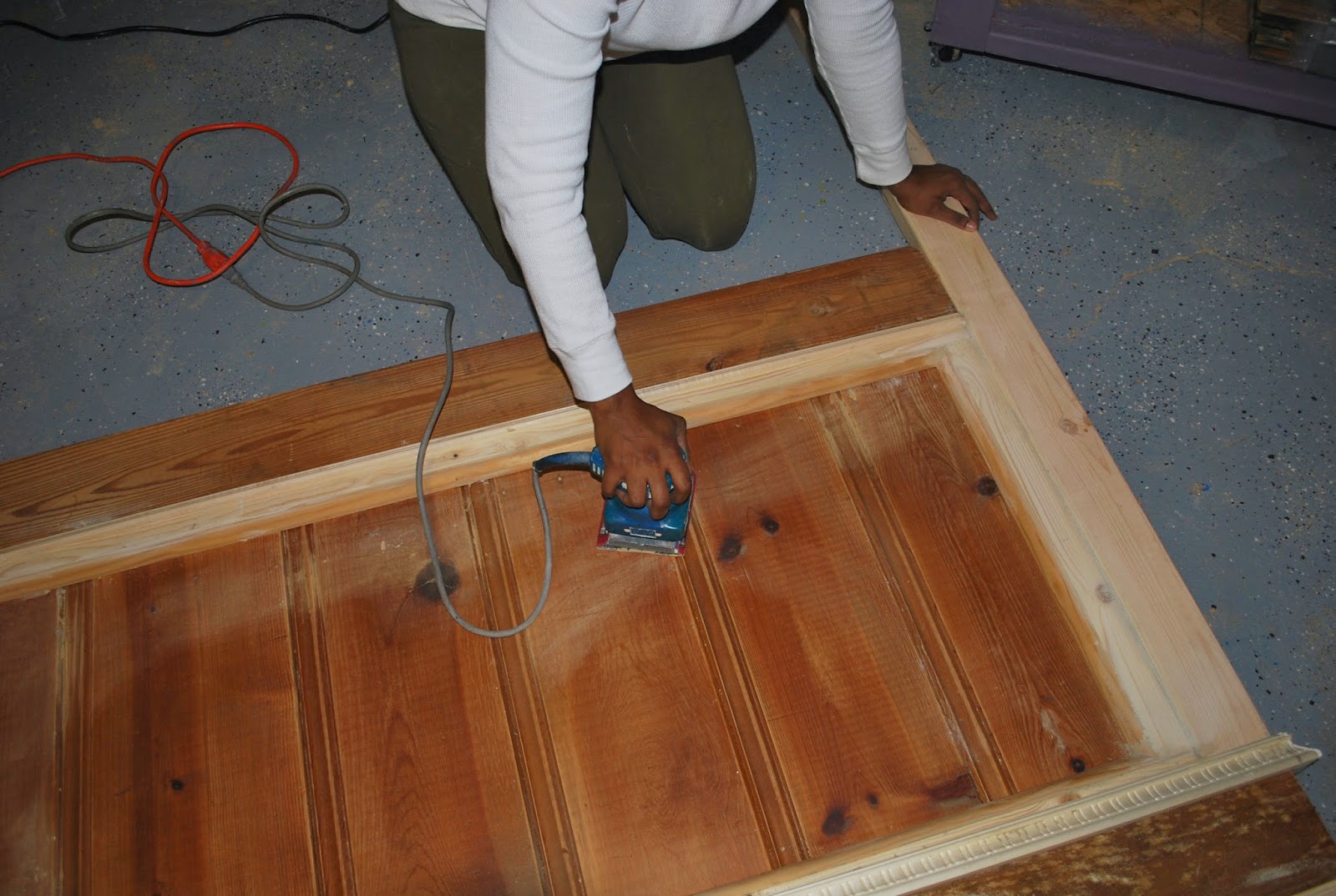 Once it has dried, sand down the headboard and prep for staining or painting.