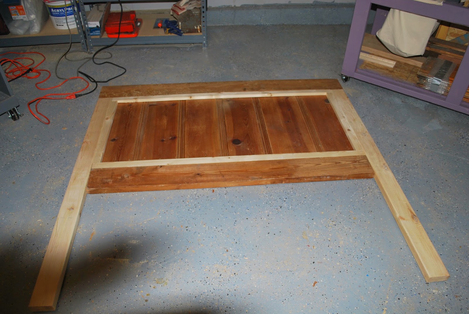 Once I’d sanded my mistake I turned the headboard back over to attach the legs of the headboard.