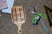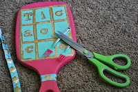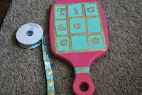 To add a little more visual interest I took some alphabet sticker letters and outlined Tic-Tac-Toe.
