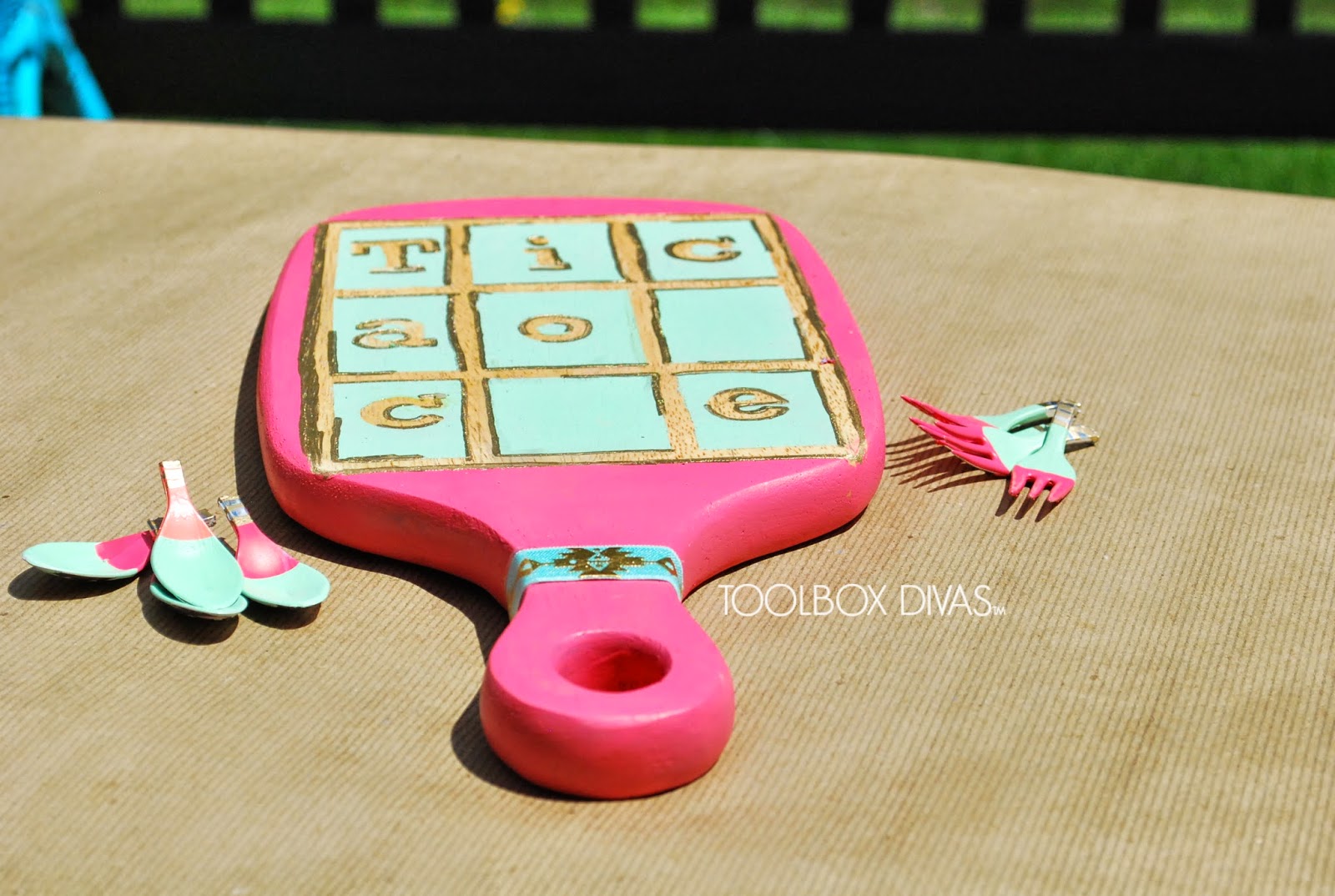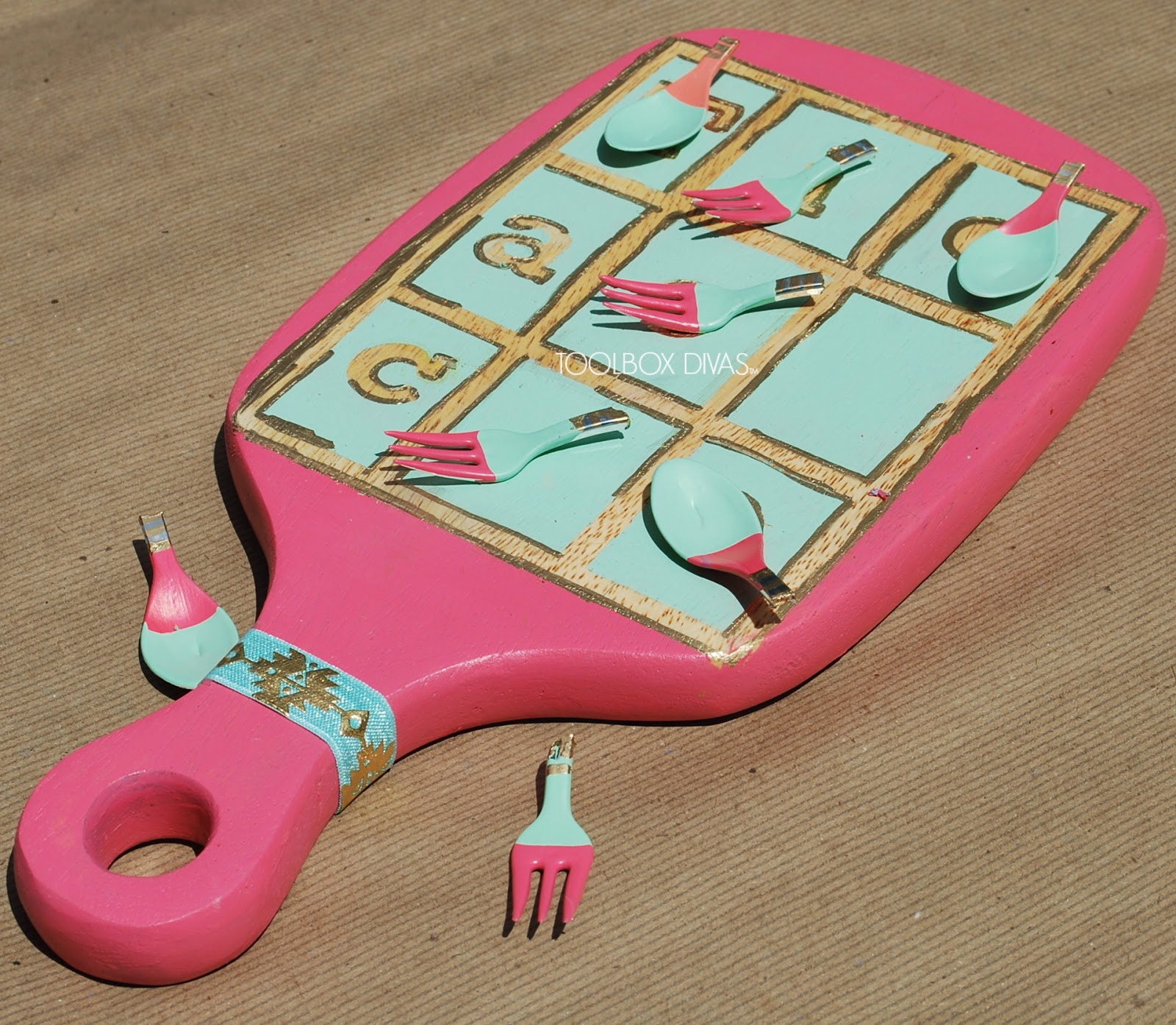 I then dipped the forks and spoons into the opposing color to make two-toned game pieces.