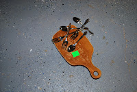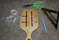 The game pieces are forks and spoons. To add visual interest to the forks and spoons I dipped both the forks and spoons in complementary paint and placed on disposable plate to dry.