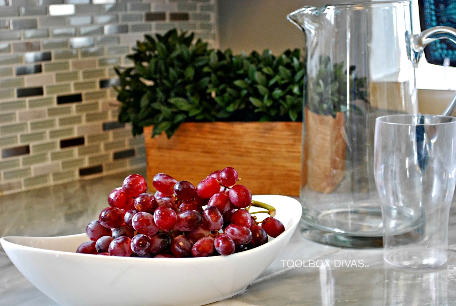 The center of attention is normally the delicious food. We forget the kitchen needs a little attention to its decorative details as well. This can be accomplished of course in the detail of the cabinets, the counters and jeweled backsplashes. But it’s also about the accessories. Not too much. A little really goes a long way in the kitchen. But little elements here and there bring life to a kitchen. So while out shopping at one of my favorite stores, TJ Maxx, I spotted what looked like a broken branch from a floral display. Huh, I thought. I bet there is a planter box on the floor missing a great big chunk of greenery. And as I turned the corner, there it was, a broken beat up planter that had seen better days. I flip it over to check out the price…$3 WHATTTTT?!! OK I’ll take this, and go back to pick up the broken branch.