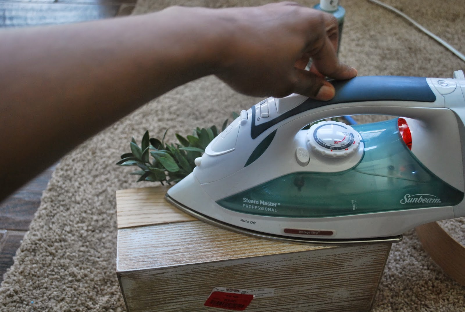 Then Iron the veneer on to the box being sure to not get to close to the wax leaves. I still need to use this iron for its intended purpose (To iron everyone Else’s clothes).